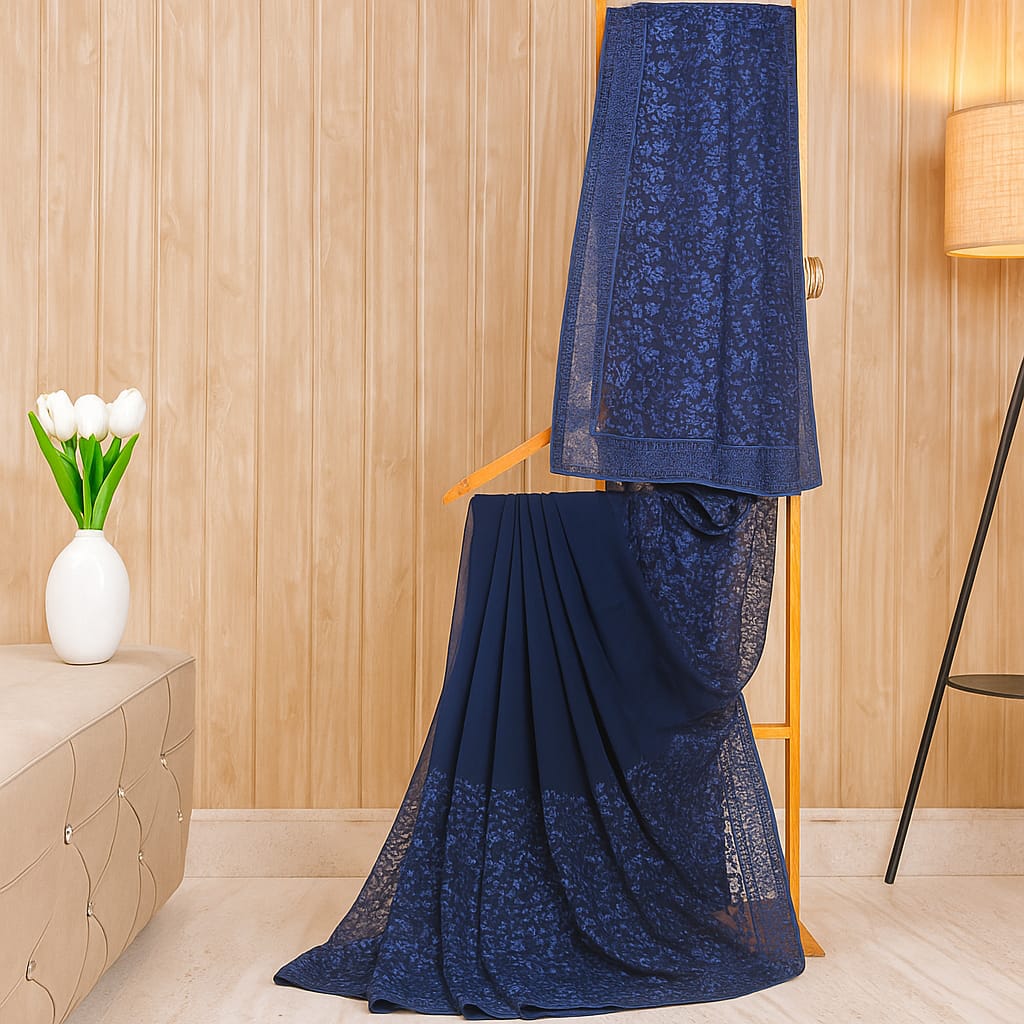 Chikankari Blue Saree